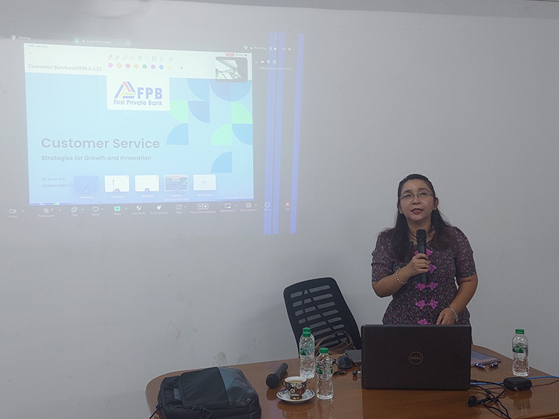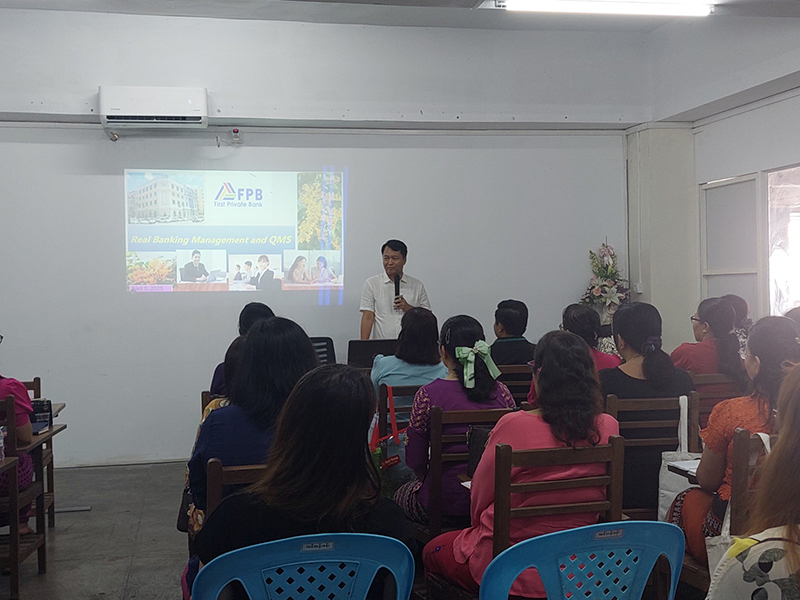 (၅.၄.၂၀၂၅) ရက်နေ့က ပထမပုဂ္ဂလိကဘဏ်လီမိတက် ဘဏ်သင်တန်းခန်းမ၌ ဘဏ်ရုံးချုပ်နှင့် ဘဏ်ခွဲများရှိ ဒုတိယမန်နေဂျာနှင့်အထက် အရာထမ်းများအား ဘက်စုံစွမ်းဆောင်ရည် တိုးတက် မြင့်မားစေရန်အတွက် Real Banking Management QMS ခေါင်းစဉ်ဖြင့် Independent Director ဦးသက်ဆွေမှလည်းကောင်း၊ Customer Service –Strategies For Growth and Innovation ခေါင်းစဉ်ဖြင့် Independent Director ဒေါက်တာ လဲ့လဲ့ဝင်း မှလည်းကောင်း သင်ကြားပို့ချခဲ့ပါသည်။
